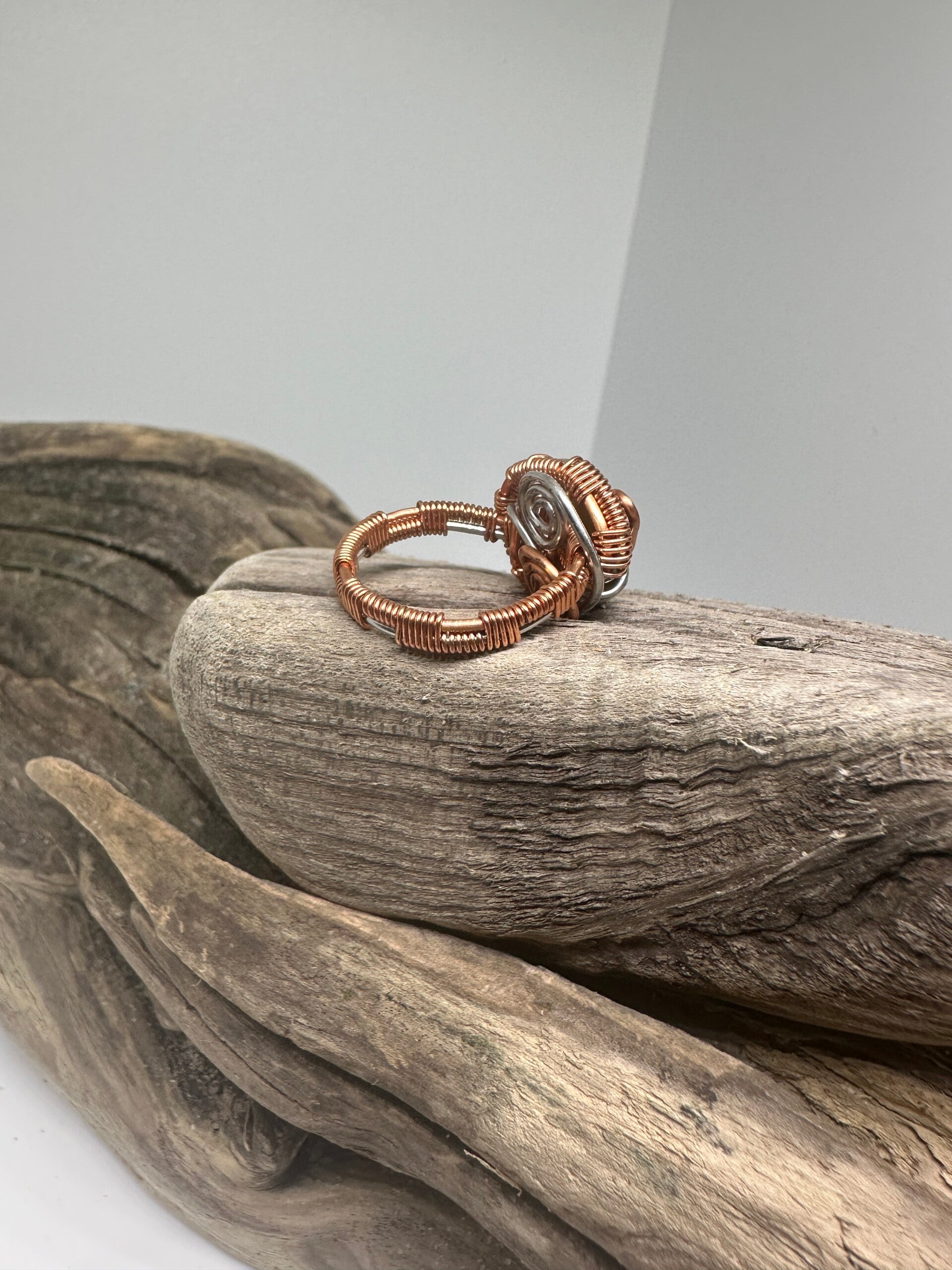 Handcrafted copper wire wrapped brown sea glass. Size 7